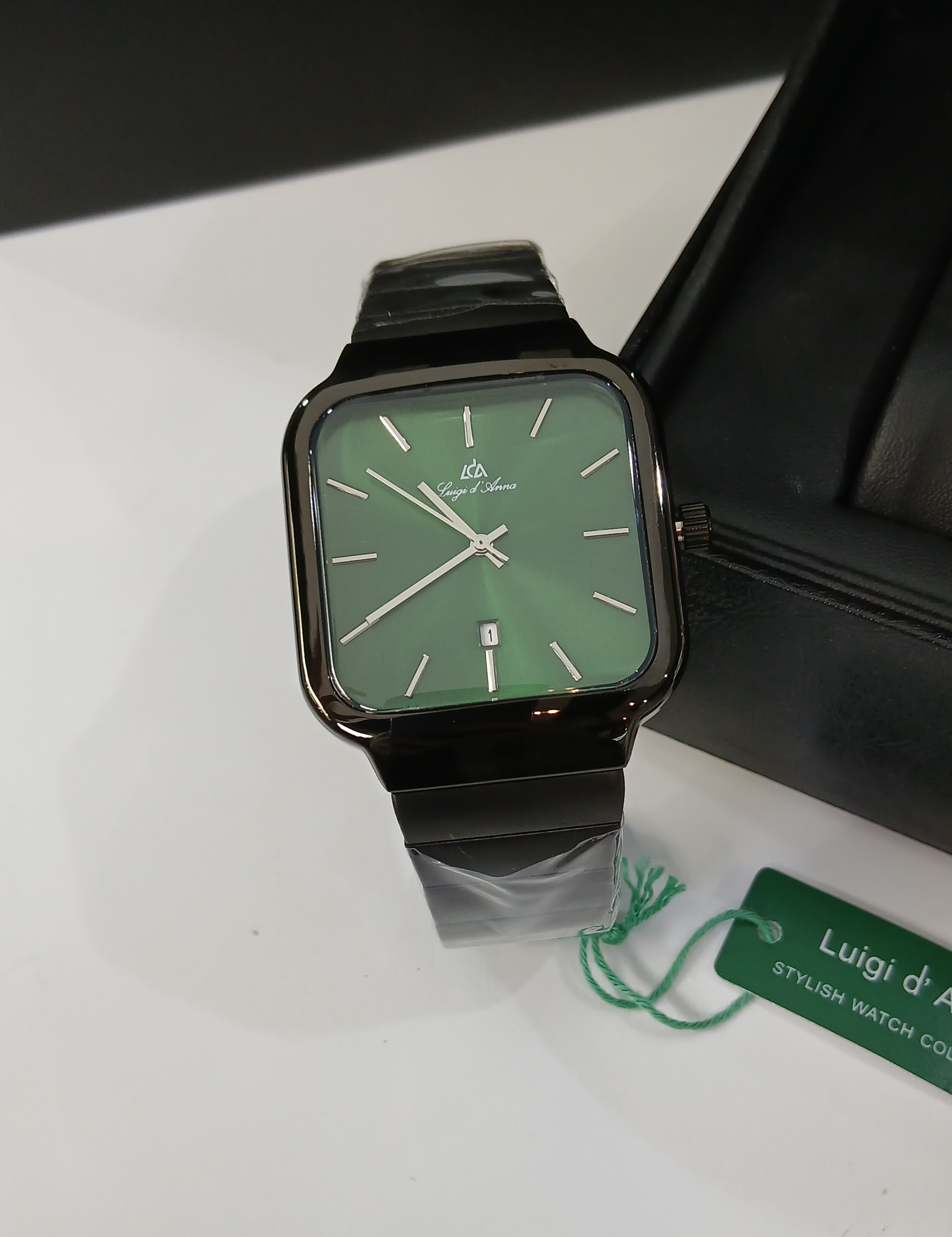 ساعت مردانه مربعی بند فلزی مشکی صفحه سبز لوئیجی د آنا Ldaناموجود