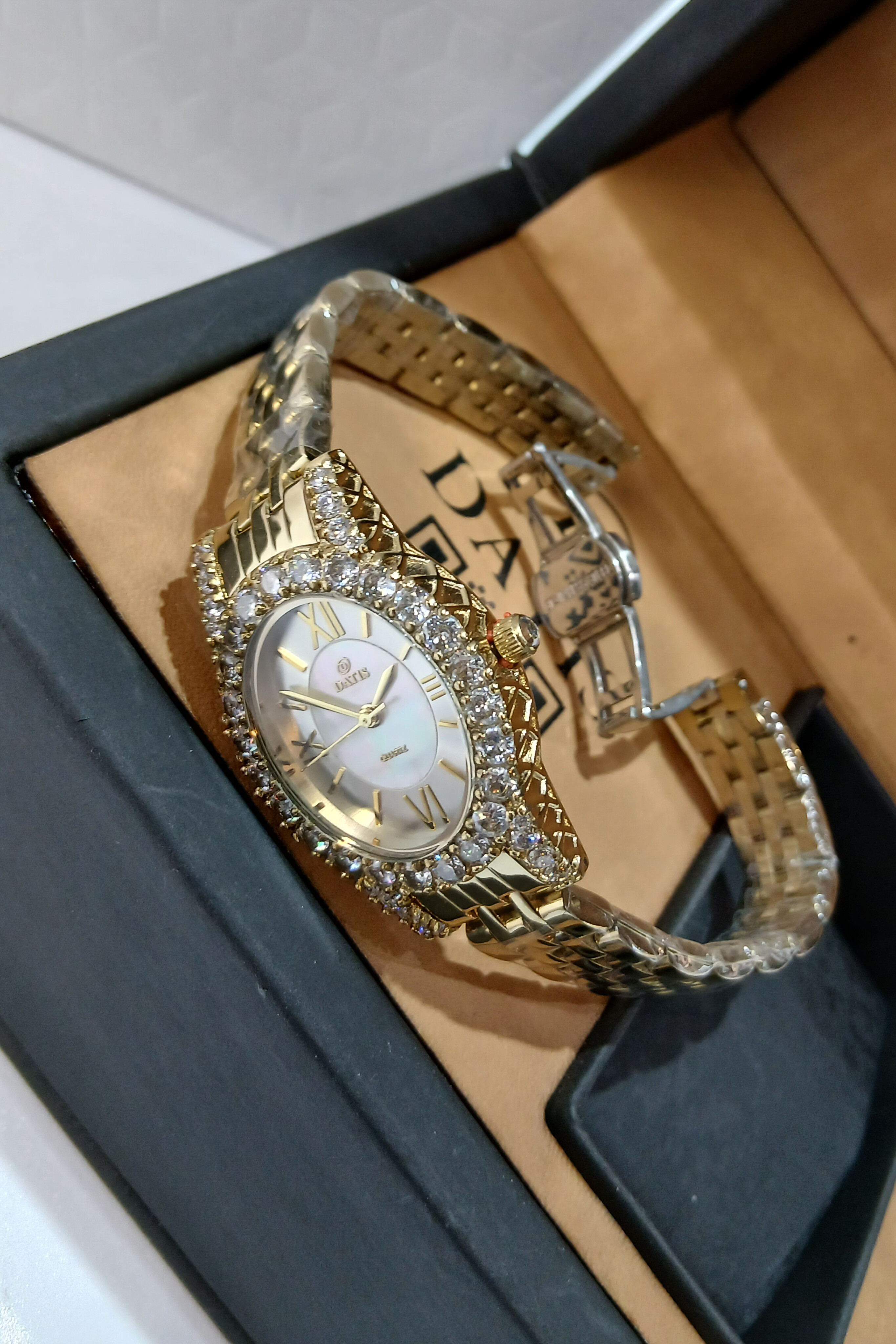 ساعت زنانه طلایی مجلسی نگیندار داتیس