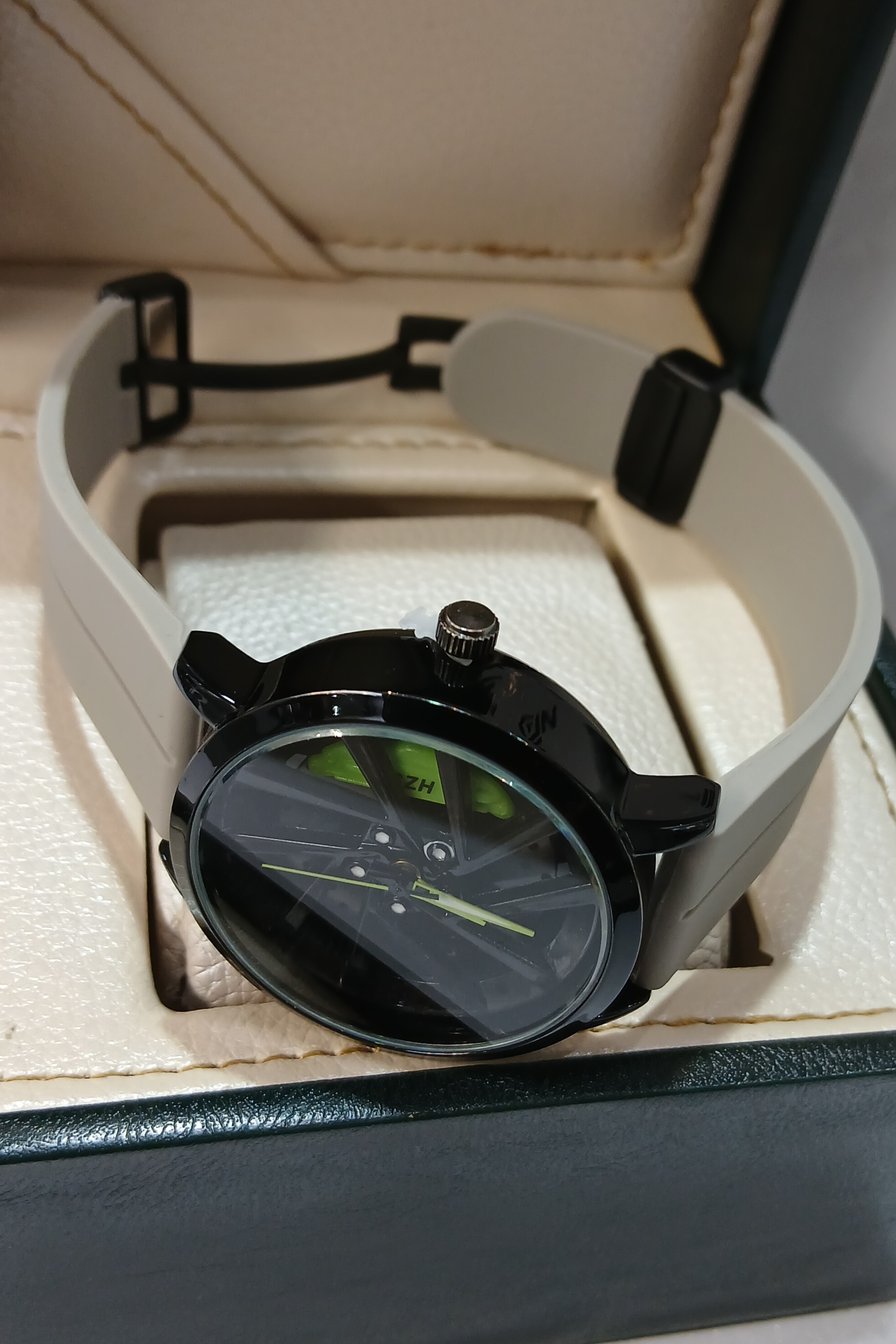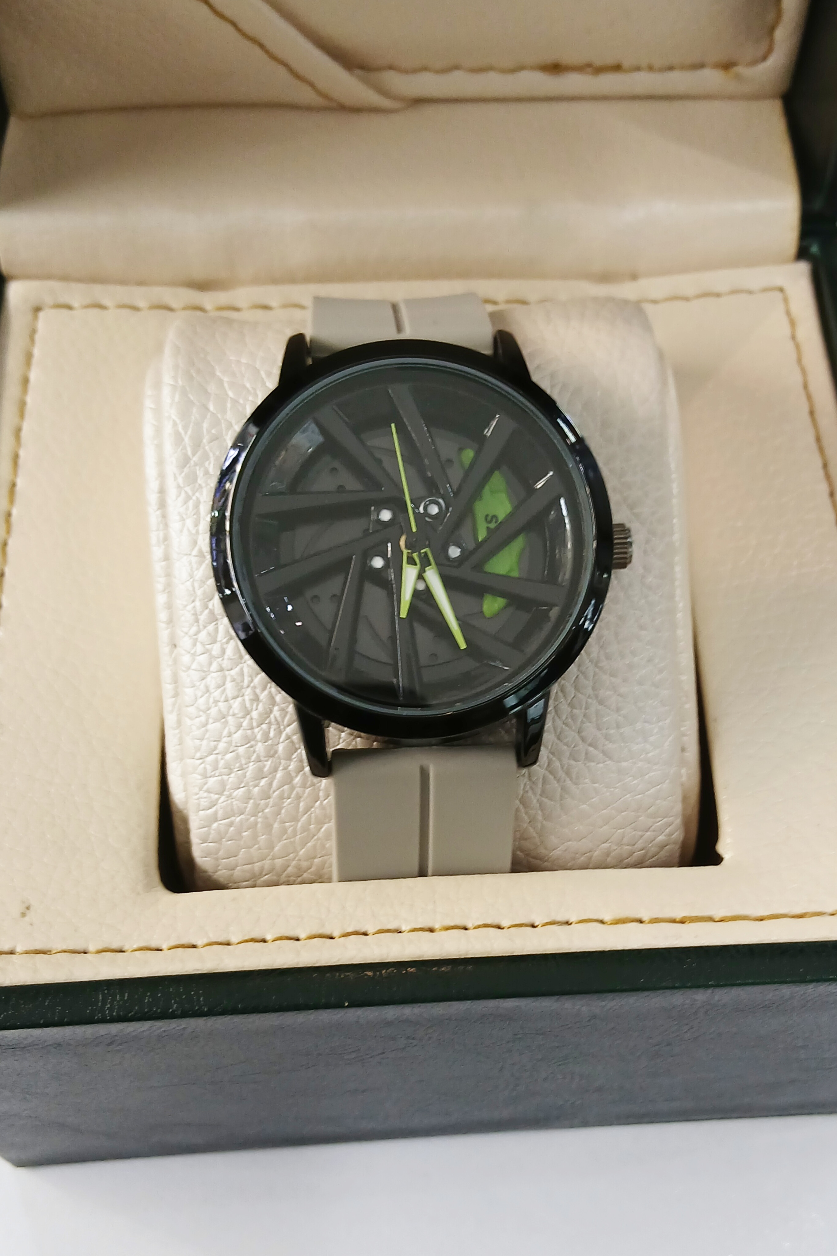 حضور رنگ سبز روی صفحه، ساعت را برای علاقهمندان به ماشینبازی، رانندگی، استایل سرعتی و مد اسپرت خاصتر میکند. اگر دنبال ساعتی هستید که هم کیفیت داشته باشد و هم استایل، این رینگی دقیقاً ترکیب مد، فشن، دوام، کاربری روزانه، طراحی مدرن و جذابیت رنگی است.