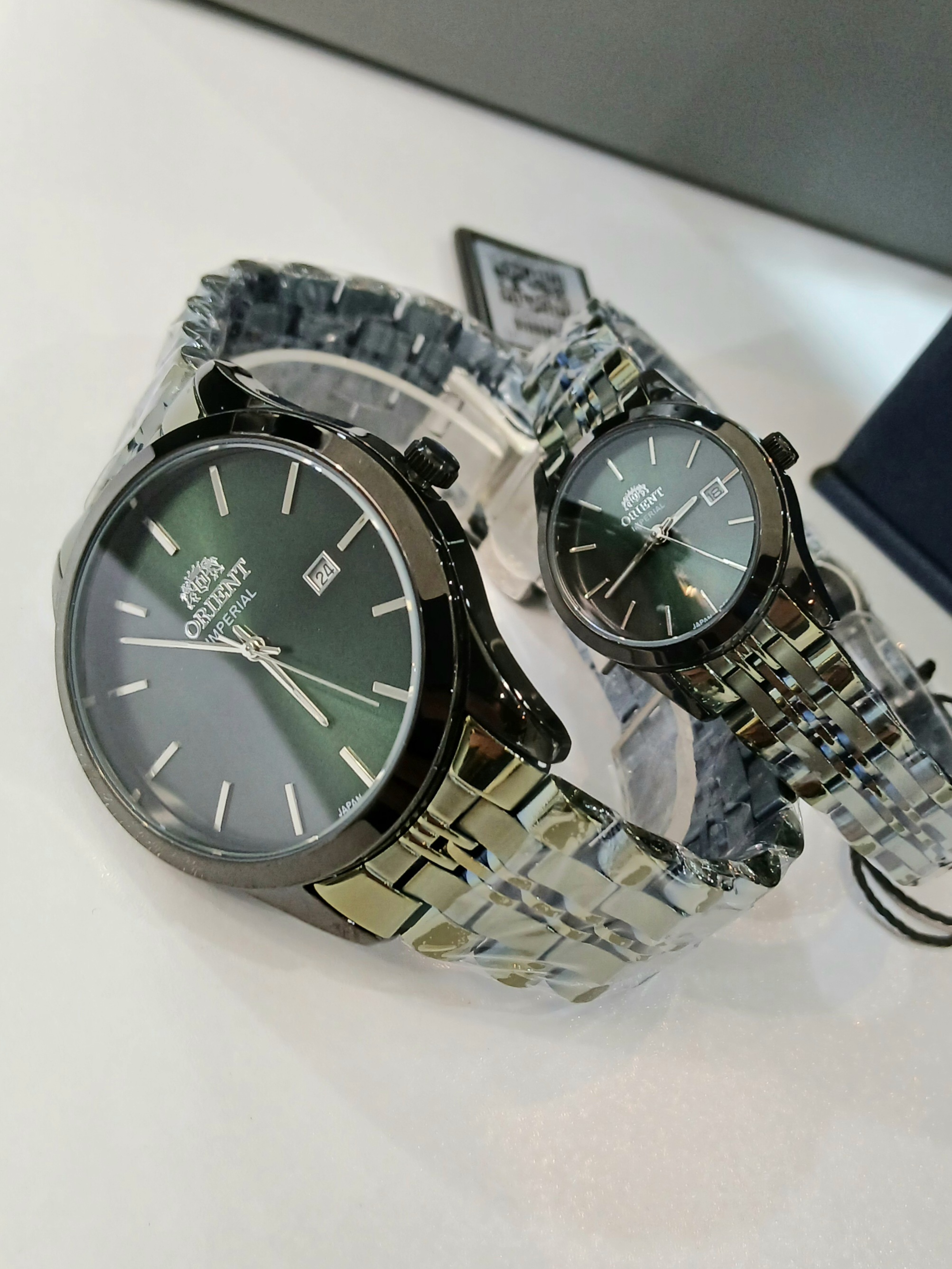 ساعت مچی ست مردانه و زنانه سبز یشمی متالیک برند اورینت (Orient) یکی از چشمگیرترین و خاصترین ستهای لوکس این برند ژاپنی است که با طراحی منحصربهفرد خود، ترکیبی بینظیر از زیبایی، اصالت و هماهنگی را برای زوجهای خوشسلیقه به ارمغان میآورد. این ست با رنگ خاص سبز یشمی و درخشش متالیک بند استیل خود، نماد هماهنگی و عشق جاودانه است.