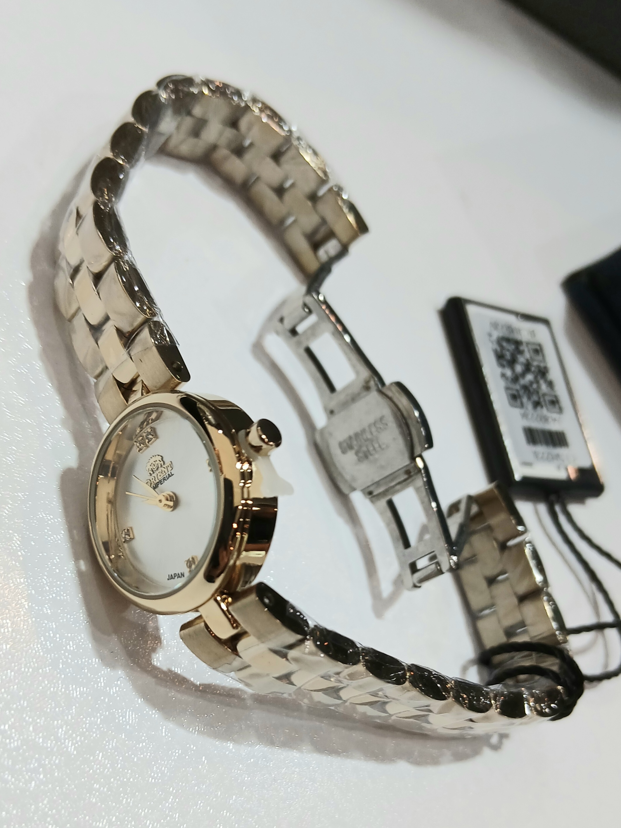اگر به دنبال ساعت زنانه ظریف، ساعت مچی طلایی، ساعت شیک زنانه، ساعت فشن، ساعت لوکس، ساعت اورجینال، ساعت ضدآب، ساعت با بند استیل، ساعت رنگ ثابت، ساعت آنتیآلرژی، ساعت مینیمال، ساعت ظریف برای هدیه، یا ساعت ژاپنی باکیفیت هستید، این مدل از اورینت دقیقاً همان چیزی است که به دنبالش هستید. درخشش طلایی بدنه در کنار سادگی صفحه سیلور، جلوهای جاودانه و زنانه به دستان شما میدهد.