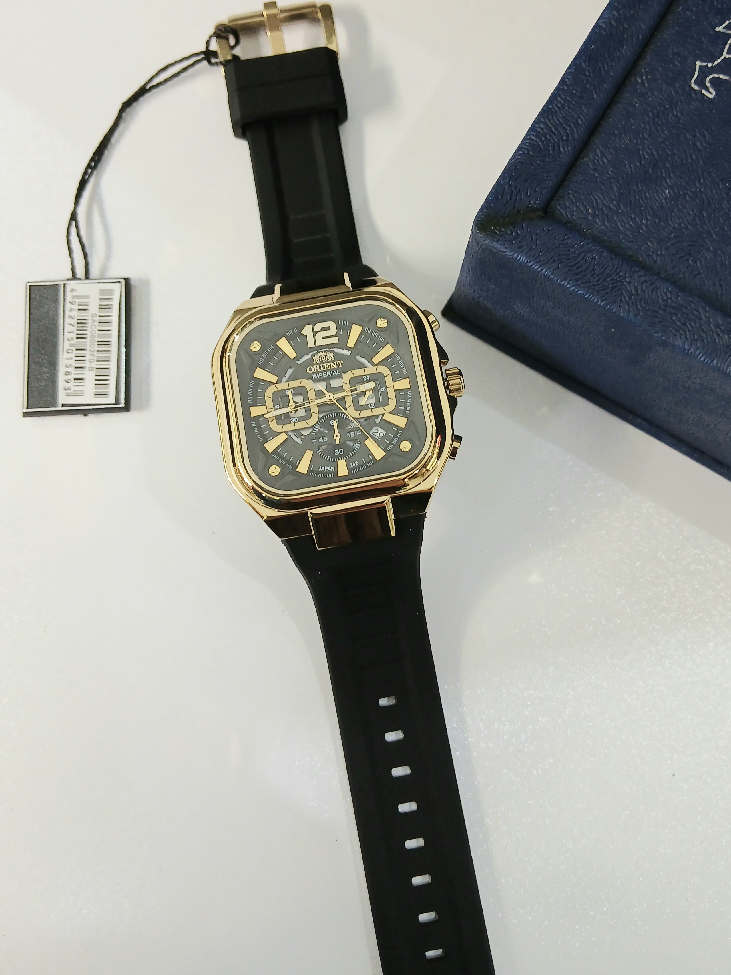 ترکیب طراحی مربعی مدرن، بند رابر مشکی و صفحه کرنوگراف دقیق، این ساعت را به اکسسوریای خاص برای آقایانی تبدیل کرده که به استایل اسپرت، حرفهای و متفاوت اهمیت میدهند. ظاهر منحصربهفرد و کیفیت بالای ساخت آن، نشان از اصالت برند اورینت و دقت ژاپنی دارد.