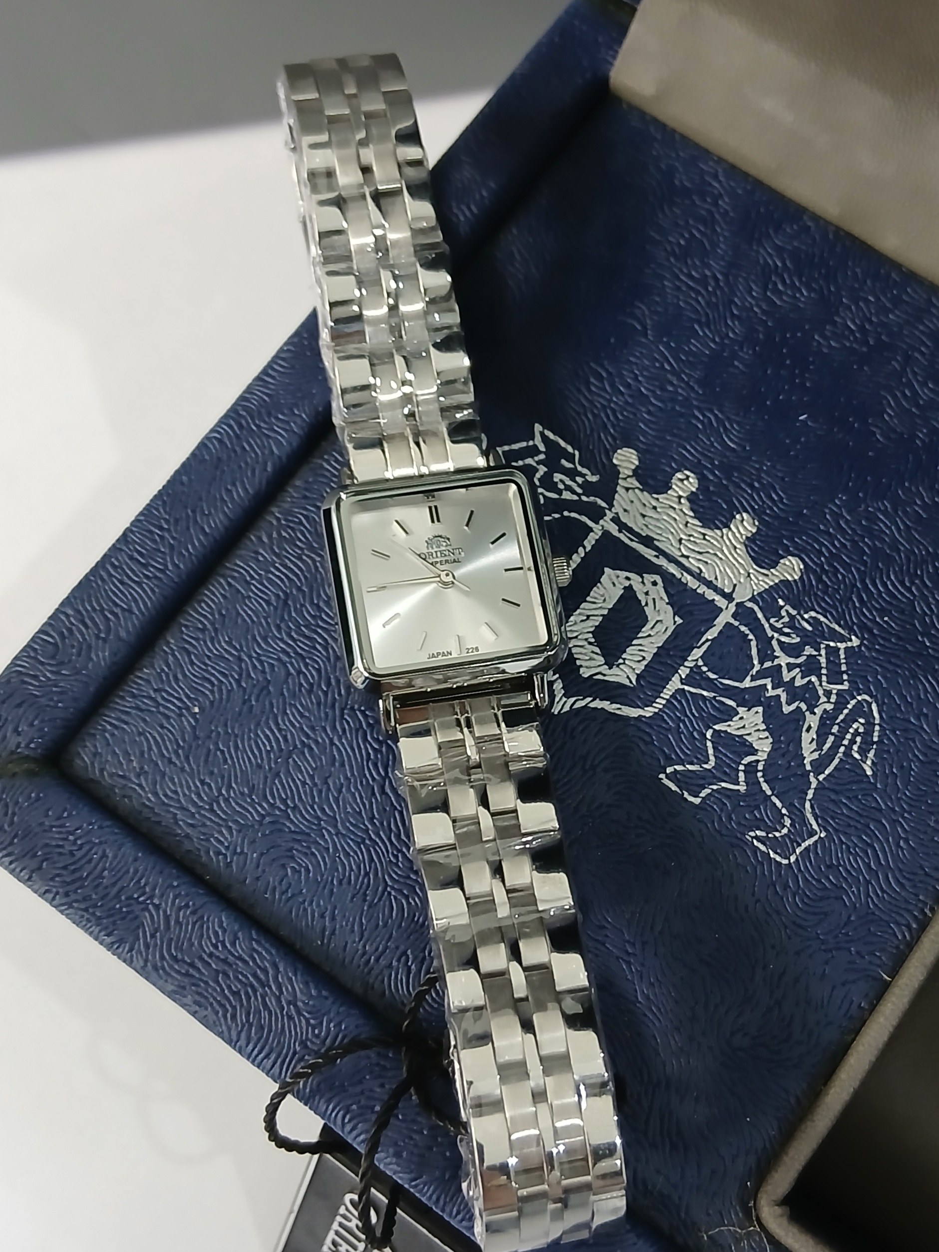 صفحهی ساده و تمیز بدون عدد یا نگین، با عقربههای براق و لوگوی برجسته برند، حس مینیمالیسم و کلاس بالا را منتقل میکند. ساعت زنانه مربعی اورینت، گزینهای عالی برای کسانی است که میخواهند با اکسسوری ظریف اما تأثیرگذار، استایل خود را ارتقا دهند.