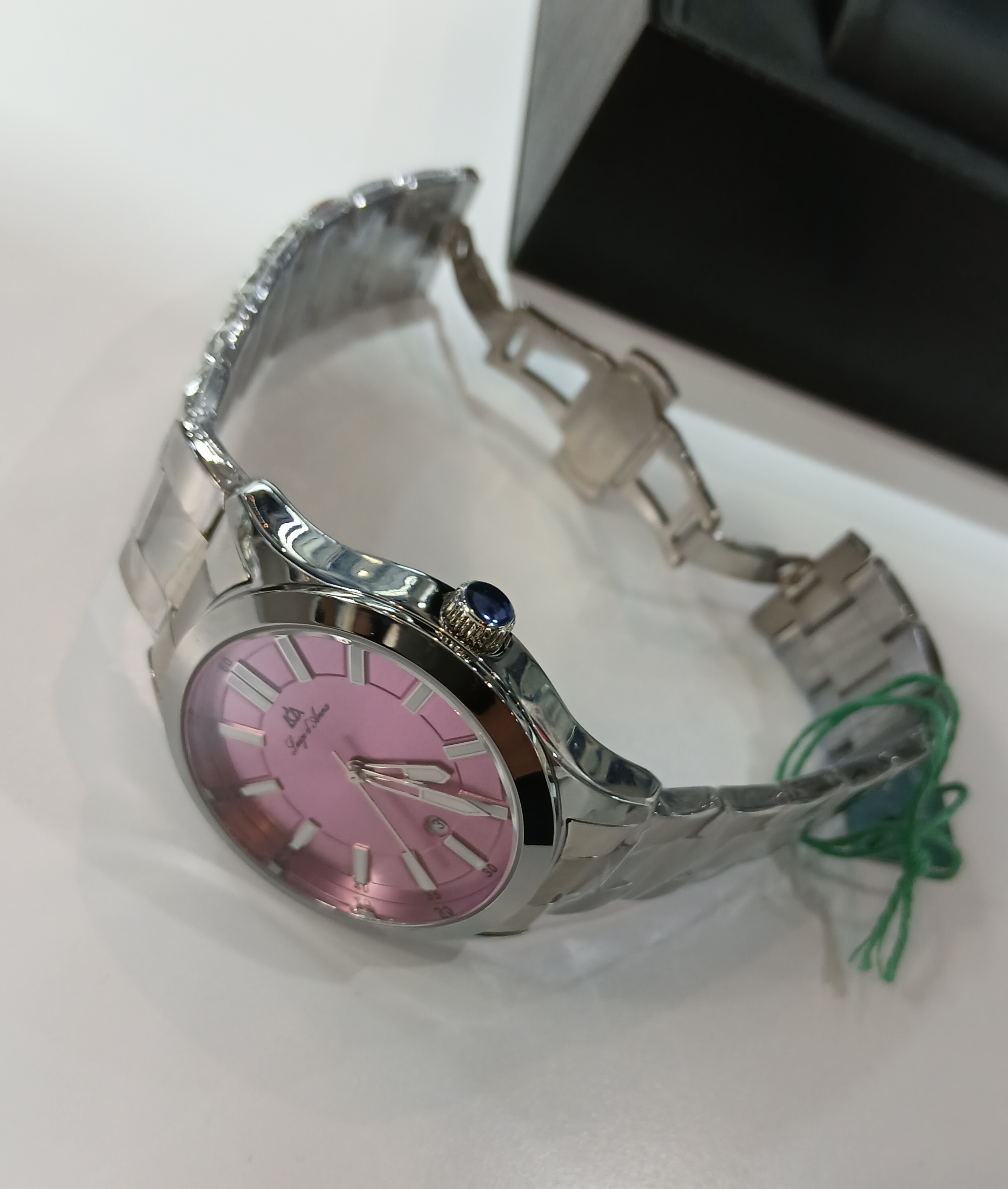 ساعت مردانه Lda با صفحه صورتی و بند فلزی سیلور، یک مدل متفاوت و چشمگیر است که برای آقایان با استایل خاص و سلیقه غیرتکراری طراحی شده. ترکیب صفحه کاملاً صورتی با بدنه و بند استیل براق، ظاهری شیک، امروزی و جوانپسند ایجاد میکند. این ساعت با قاب گرد، شیشه مقاوم، بدنه استیل ضدزنگ، نمایشگر تاریخ، عقربههای دقیق و کیفیت ساخت قابل اعتماد، انتخابی عالی برای استفاده روزمره، محیط کاری و استایل رسمی است.