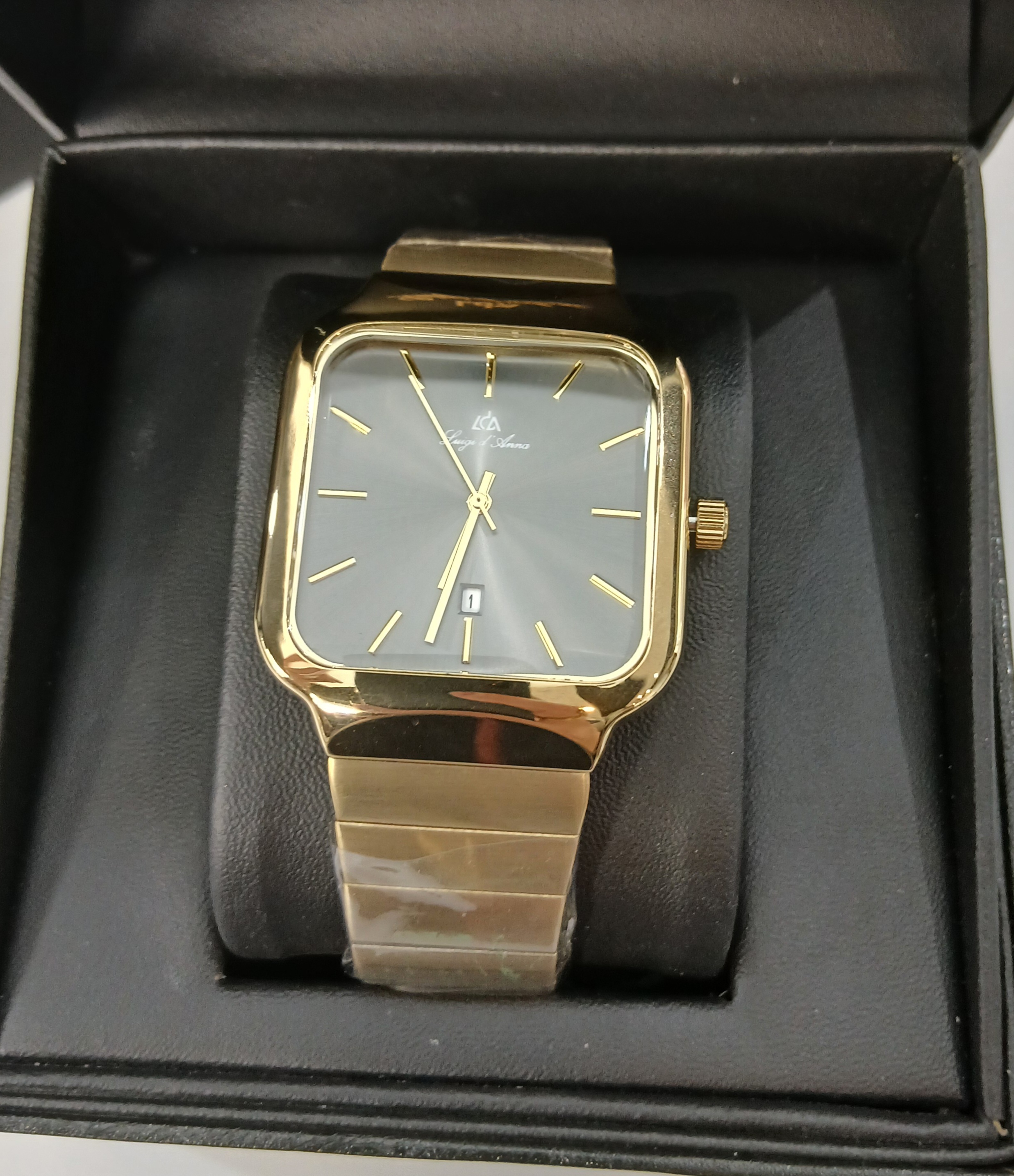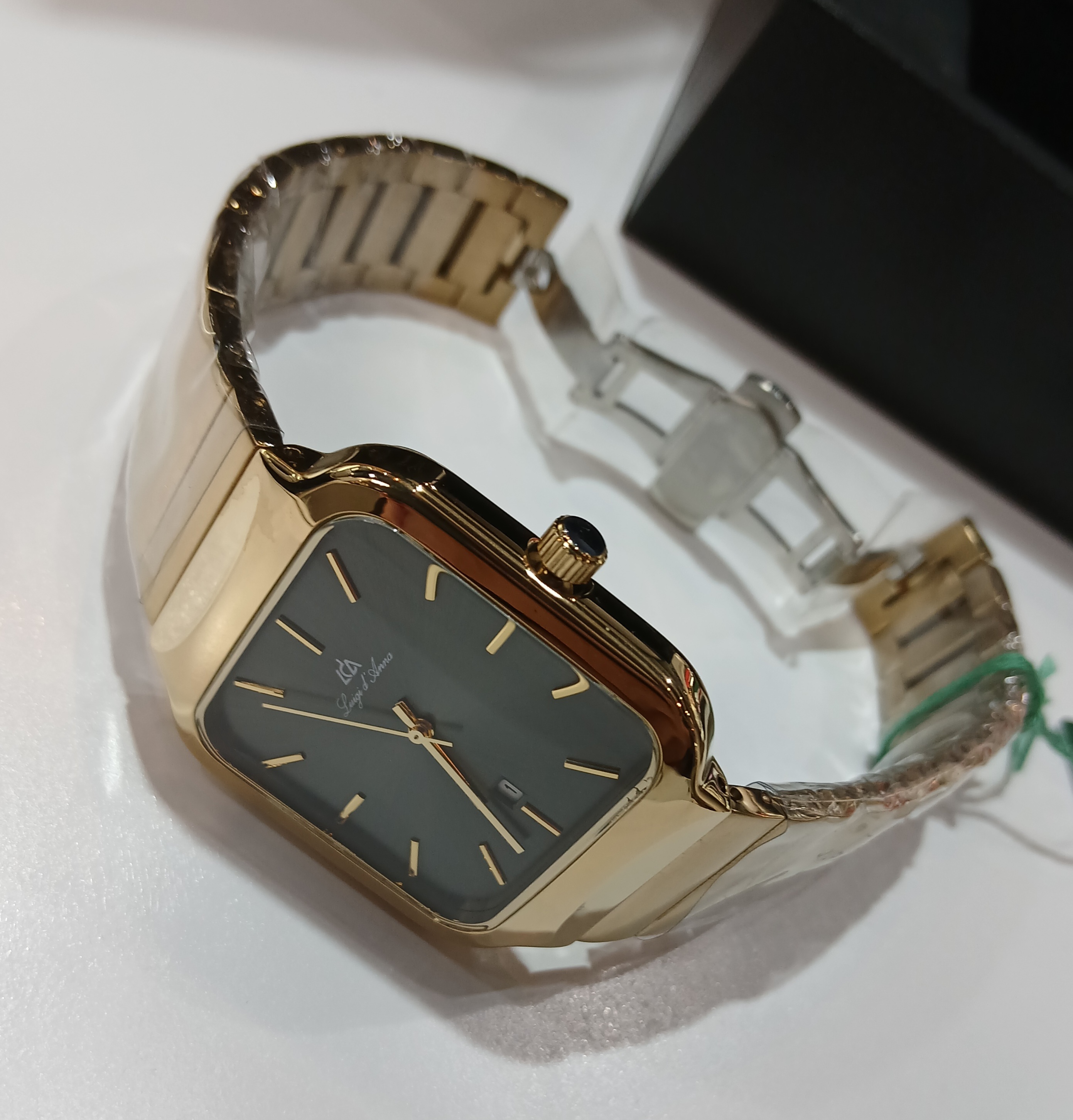 ساعت مردانه مربعی طلایی صفحه مشکی لوئیجی د آنا Lda