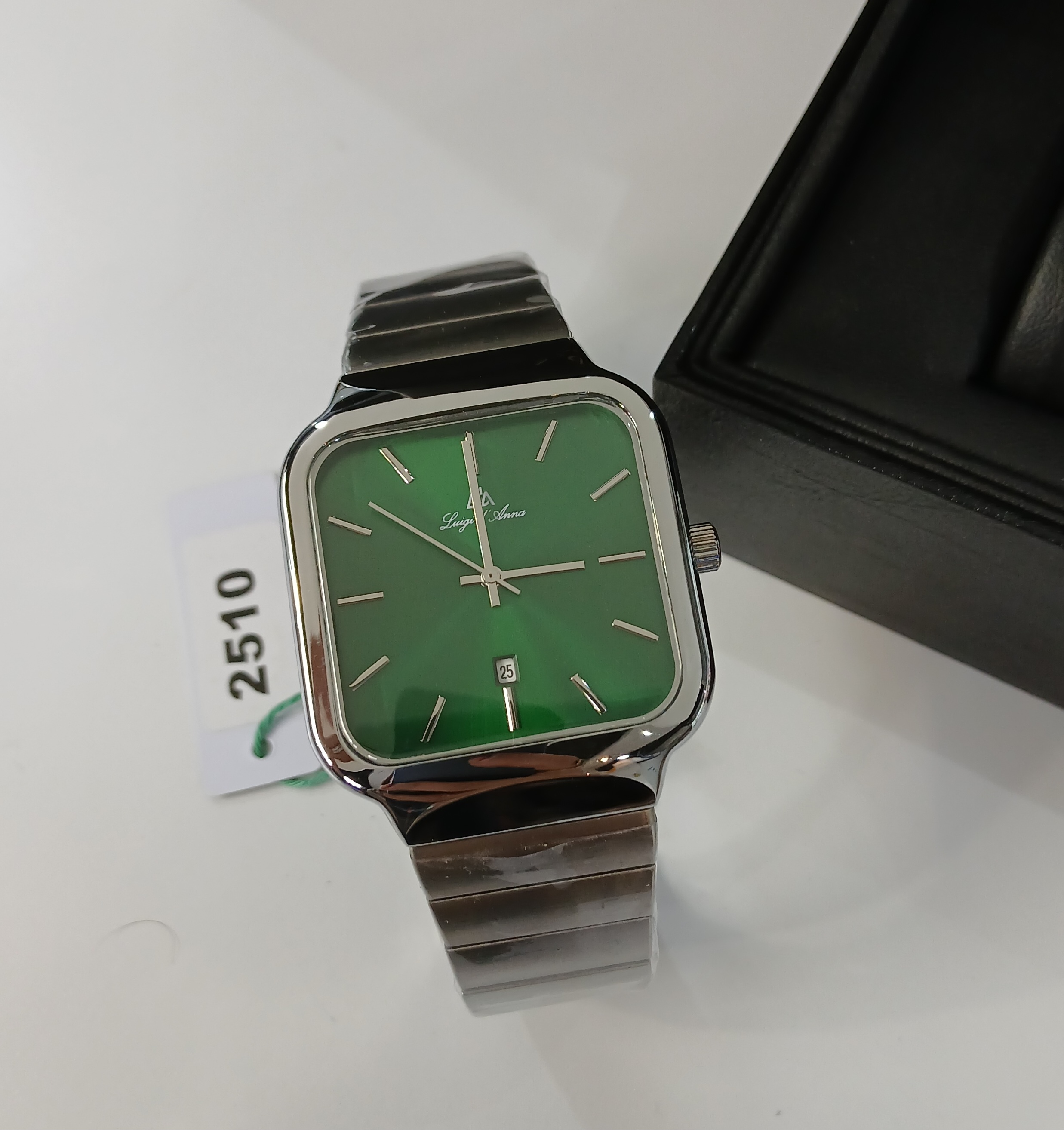 ساعت مچی مردانه مربعی فلزی سیلور صفحه سبز لوئیجی د آنا Lda مدل KG2510