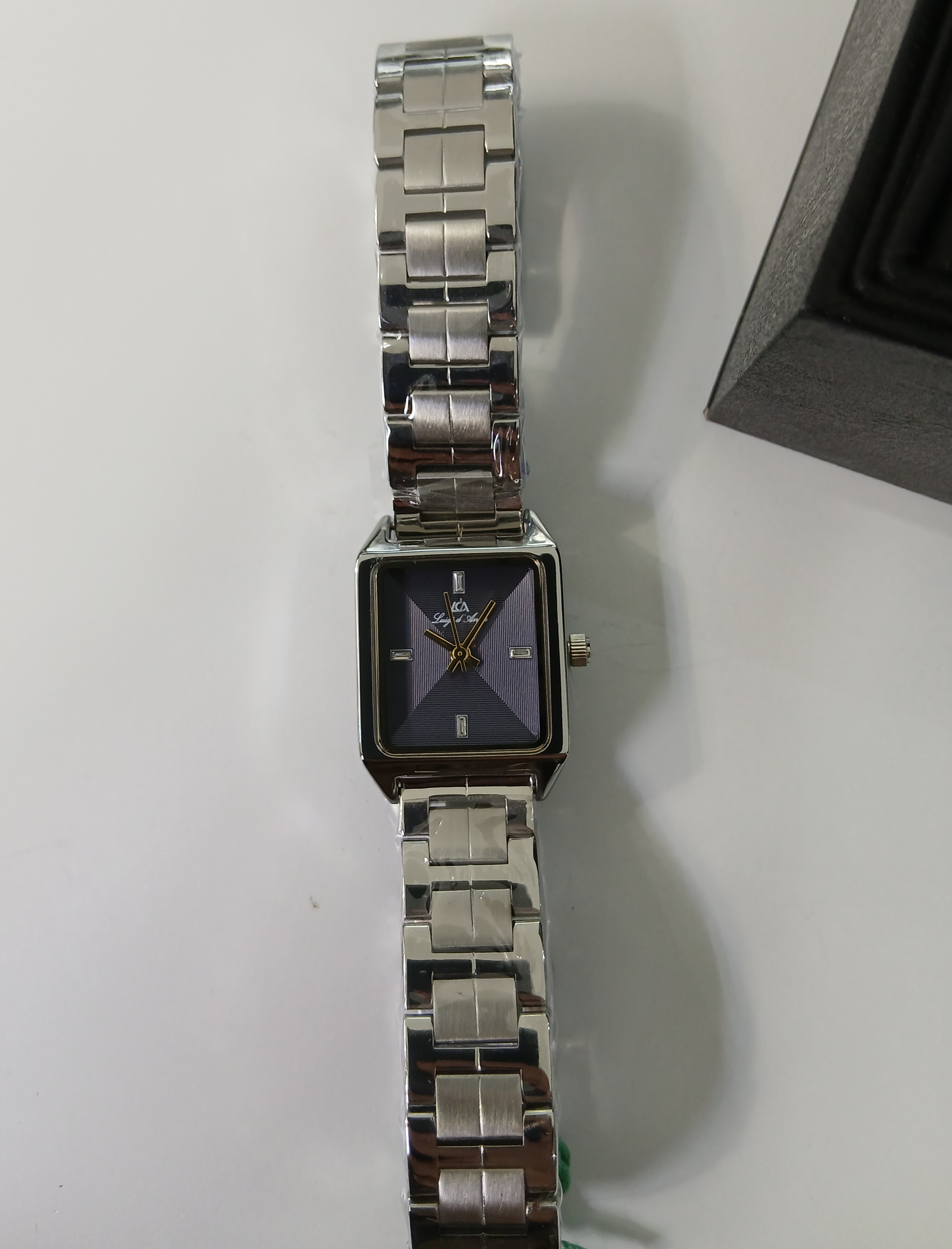 ساعت زنانه LDA با بند فلزی سیلور و صفحه مستطیلی سورمهای نماد سادگی هوشمندانه و ظرافت مدرن است. طراحی مستطیلی قاب در کنار رنگ سورمهای عمیق صفحه، این مدل را به انتخابی ایدهآل برای خانمهایی تبدیل میکند که به استایل مینیمال، خطوط تمیز و طراحی بدون اغراق علاقه دارند. این ساعت بهراحتی با استایل رسمی، استایل روزمره، تیپ اداری و فشن زنانه هماهنگ میشود.