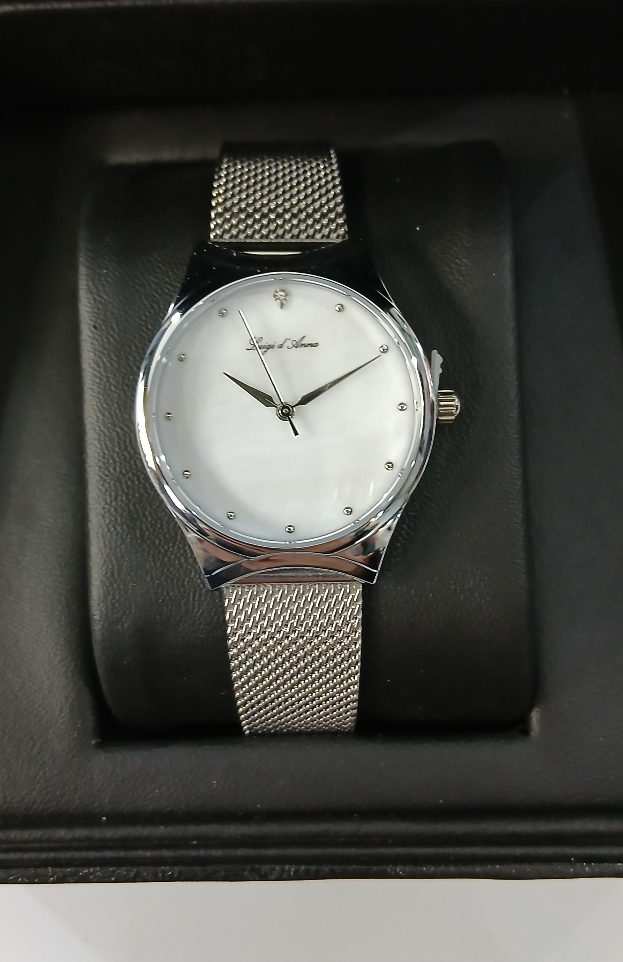 ساعت زنانه بند حصیری سیلور صفحه سفید لوئیجی د آنا Lda