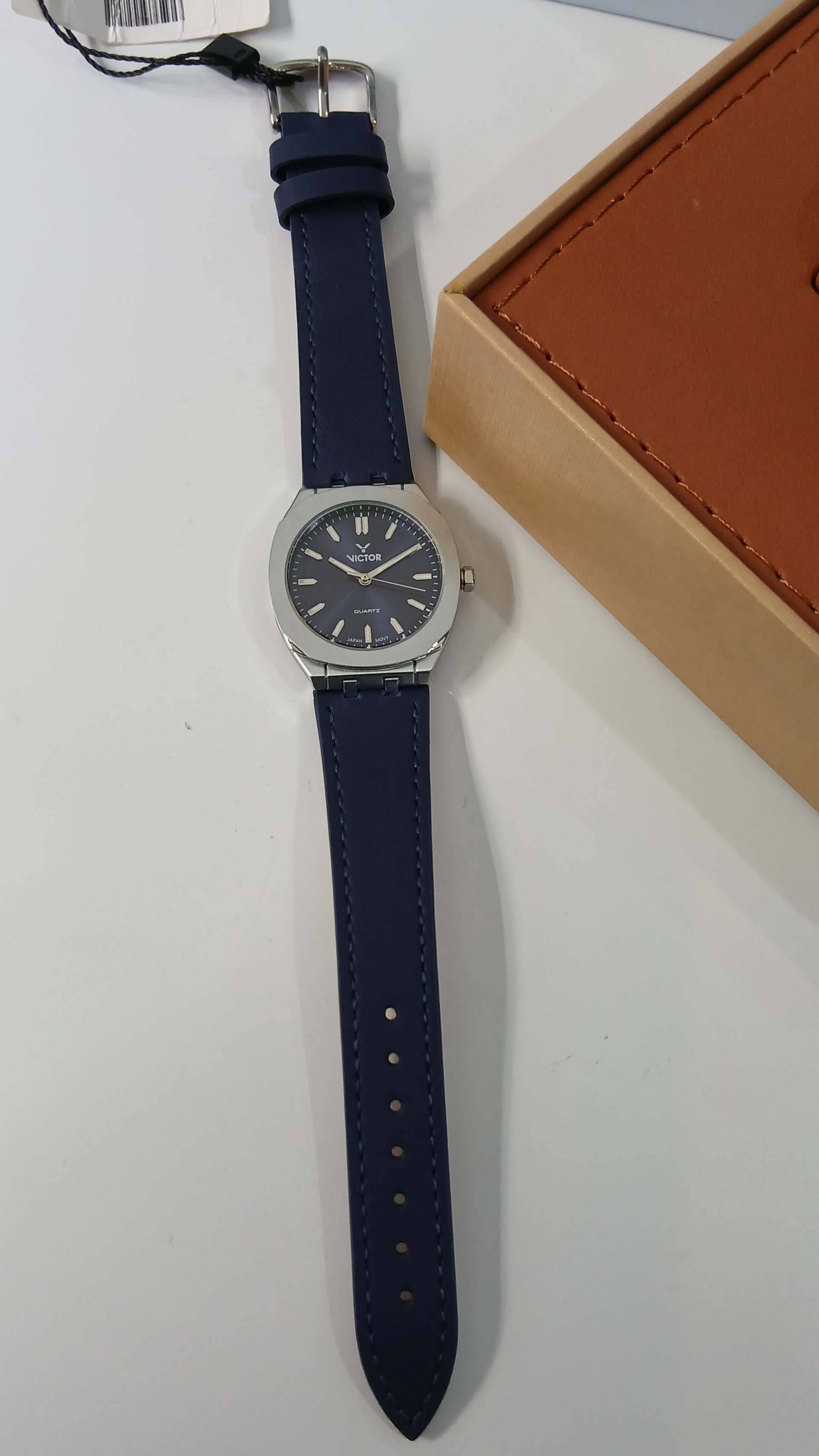 ساعت زنانه بند چرمی سورمه ای ویکتور مدل 5633