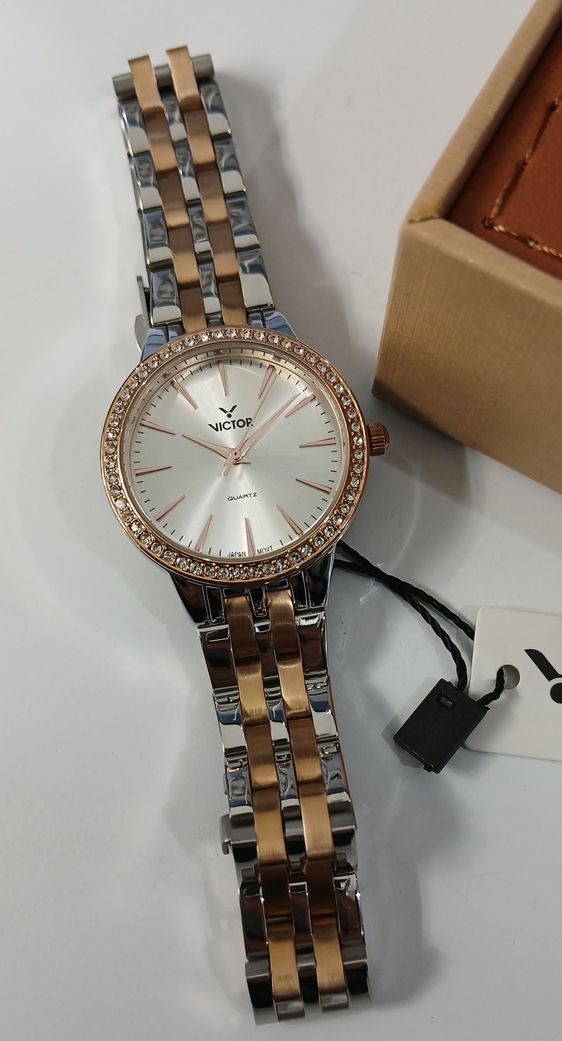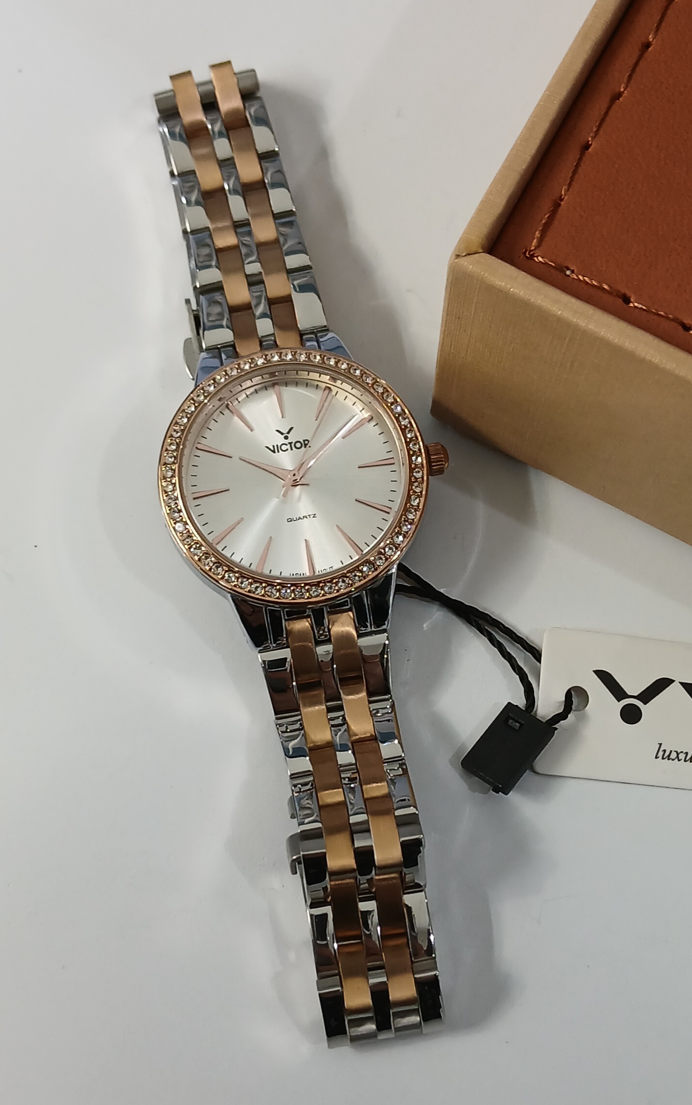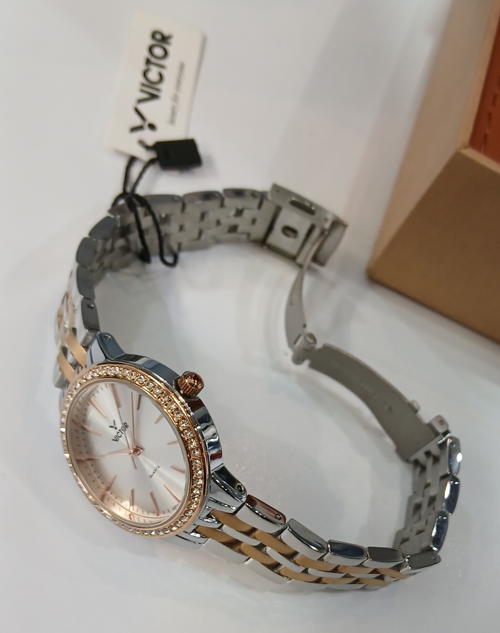 ساعت زنانه مجلسی ویکتور مدل 5670 با بند فلزی دو رنگ سیلور و طلایی، انتخابی شیک و لوکس برای بانوانی است که به ساعت مچی اورجینال و استایل رسمی و مجلسی اهمیت میدهند. ترکیب رنگ سیلور و طلایی، جلوهای چشمنواز و جذاب ایجاد کرده و طراحی دقیق صفحه، این مدل را برای مراسم، محیط کاری یا هدیهای ارزشمند مناسب میکند. این ساعت اصل برند ویکتور بوده و با موومنت ژاپنی با دقت بالا، عملکردی روان و پایدار ارائه میدهد.