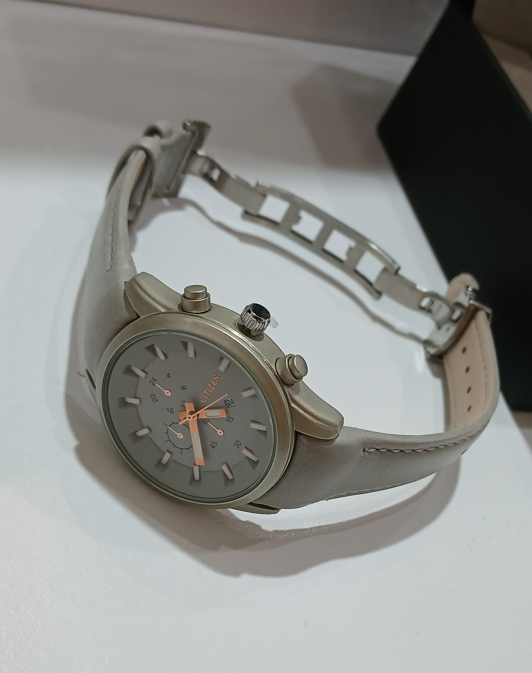 ساعت مچی زنانه سیتیزن با بند چرمی طوسی، انتخابی مدرن و ظریف برای بانوانی است که به ساعت مچی، مد و استایل روزمره و رسمی اهمیت میدهند. بند چرمی با کیفیت بالا راحتی و دوام طولانیمدت فراهم میکند و رنگ طوسی جلوهای شیک و هماهنگ با انواع استایلها به ساعت میبخشد. طراحی مینیمال صفحه این مدل، آن را برای محیط کاری، استفاده روزانه و هدیهای زیبا و ماندگار مناسب کرده است.