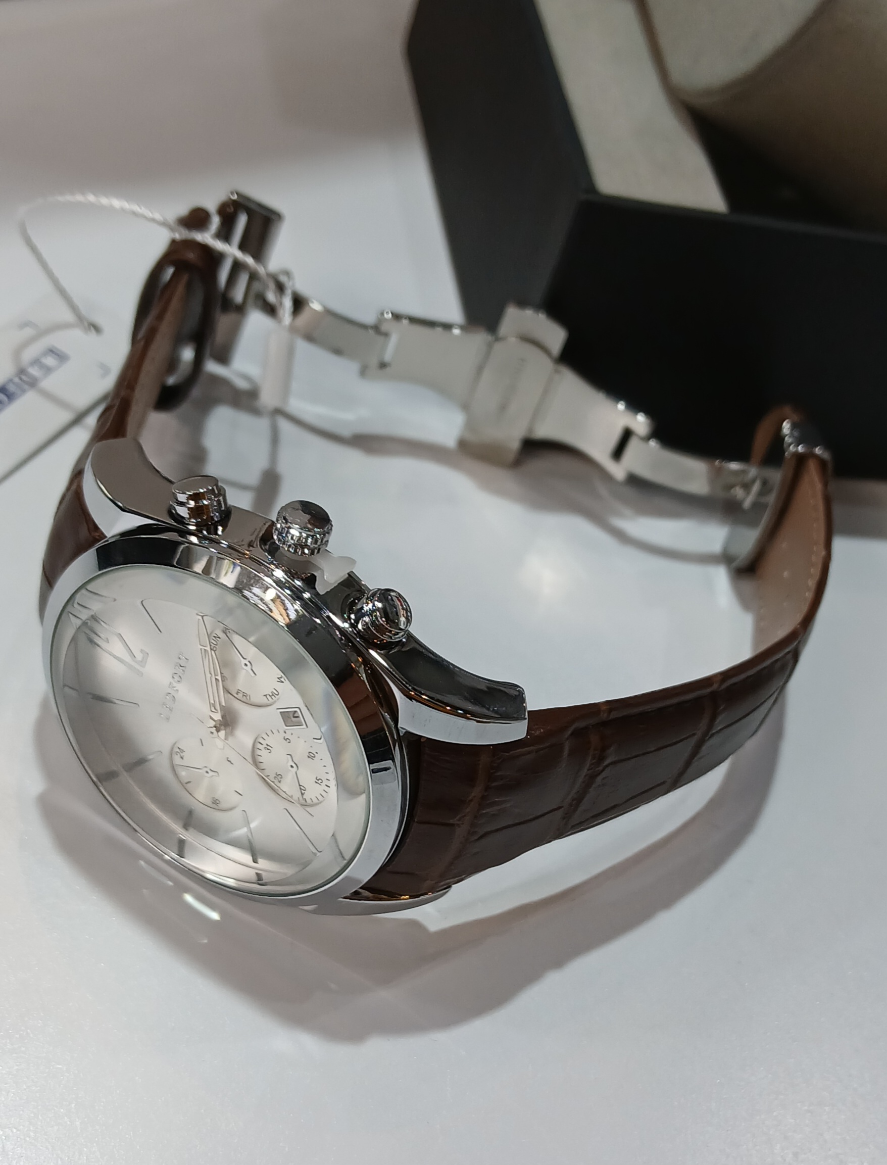 ساعت مچی مردانه بند چرمی قهوه ای لدفورت