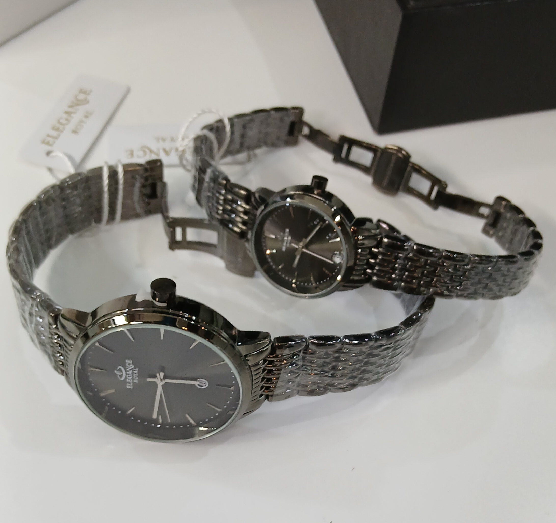 ساعت ست الگانس با بند فلزی مشکی، انتخابی هماهنگ و شیک برای زوجهایی است که به استایل رسمی و مینیمال علاقه دارند. طراحی ساده و یکدست این ست، آن را به گزینهای مناسب برای استفاده روزمره و موقعیتهای رسمی تبدیل میکند. بند فلزی مشکی جلوهای مدرن و موقر ایجاد میکند و کیفیت ساخت برند الگانس، دقت و دوام در نمایش زمان را تضمین مینماید. این ست میتواند انتخابی مطمئن برای هدیه زوجها و مناسبتهای خاص باشد.