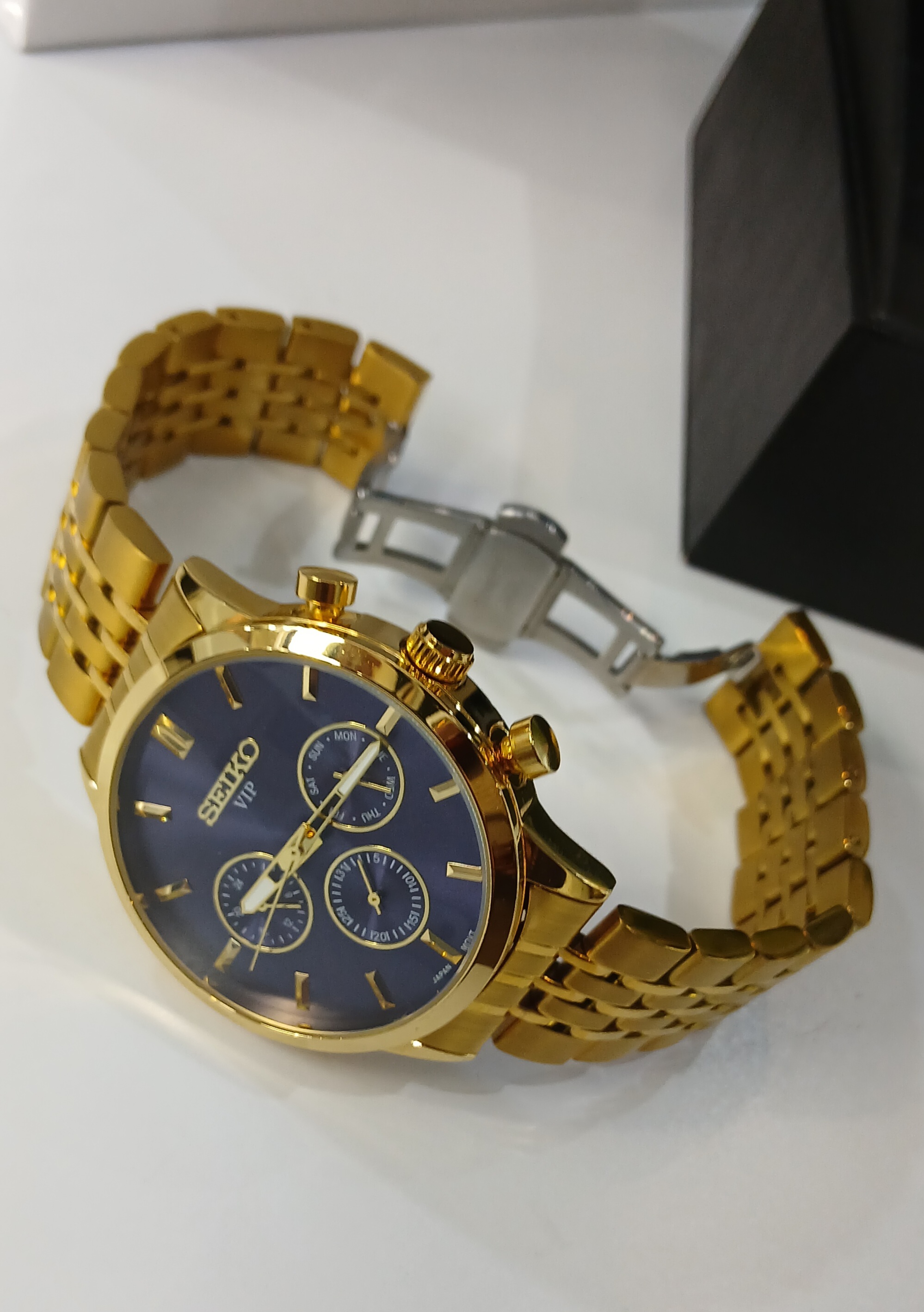 ساعت سیکو مردانه فول دیتس با بند فلزی طلایی، انتخابی قدرتمند برای آقایانی است که هم ظاهر رسمی میخواهند هم کارایی کامل. نمایشگر فول دیتس با نمایش روز و تاریخ، استفاده روزمره را دقیق و کاربردی میکند. بند فلزی طلایی جلوهای لوکس و چشمگیر دارد و کیفیت ساخت سیکو، دوام و دقت مثالزدنی را تضمین میکند. این مدل مناسب محیط کاری رسمی، مراسم خاص و هدیهای ارزشمند برای سلیقههای جدی است.