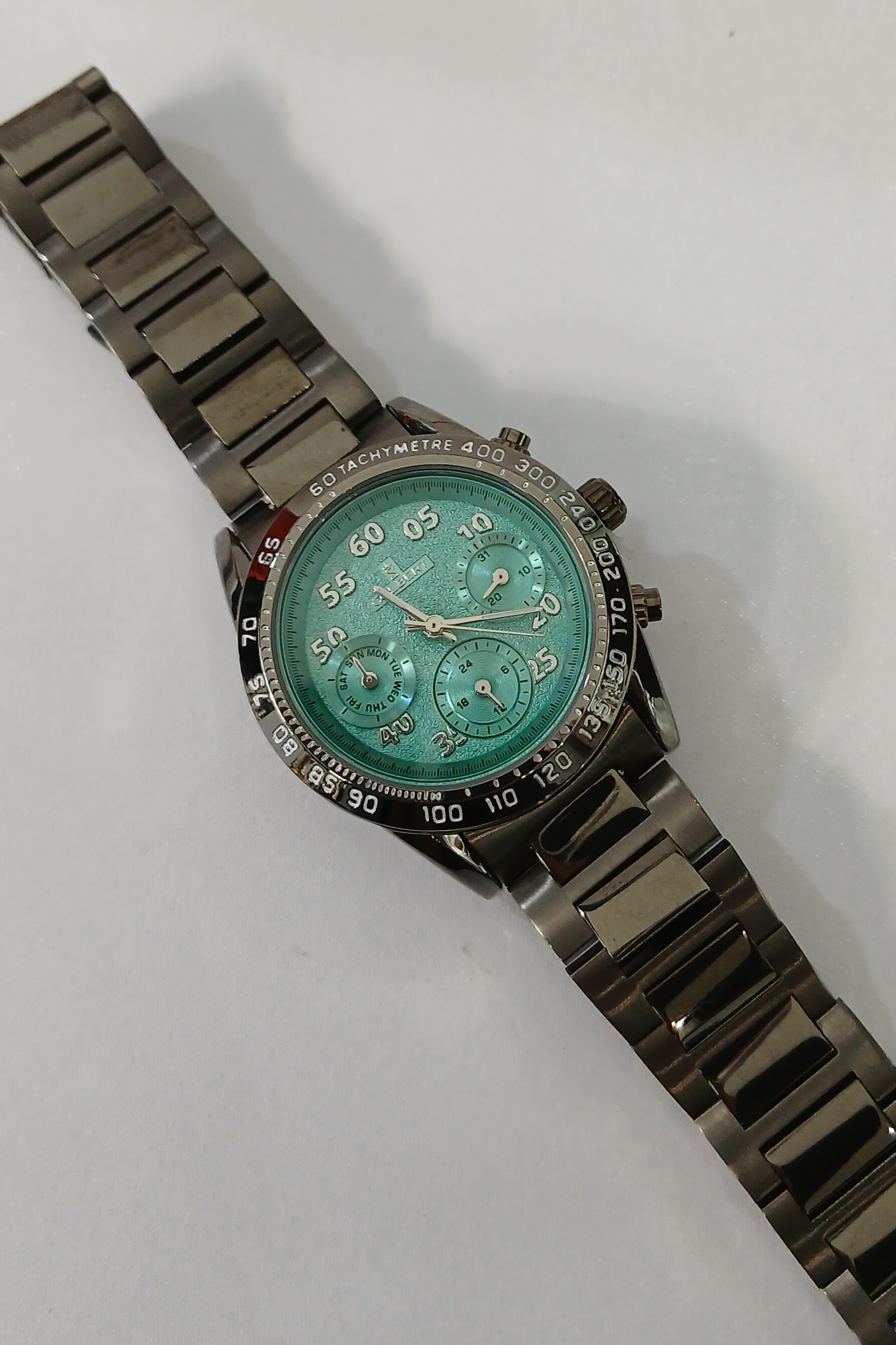 ساعت زنانه کلبرت با طراحی کرنوگراف و بند فلزی، ترکیبی از استایل اسپرت و لوکس است که مناسب خانمهایی است که به دقت، جزئیات و کیفیت بالا اهمیت میدهند. رنگ خاص دودی دلفینی (طیف خاکستری گرم با انعکاس دلفینی) جلوهای متفاوت و مدرن به ساعت میدهد و صفحه سبز آن، جذابیت بصری و هارمونی خاصی به استایل شما اضافه میکند.