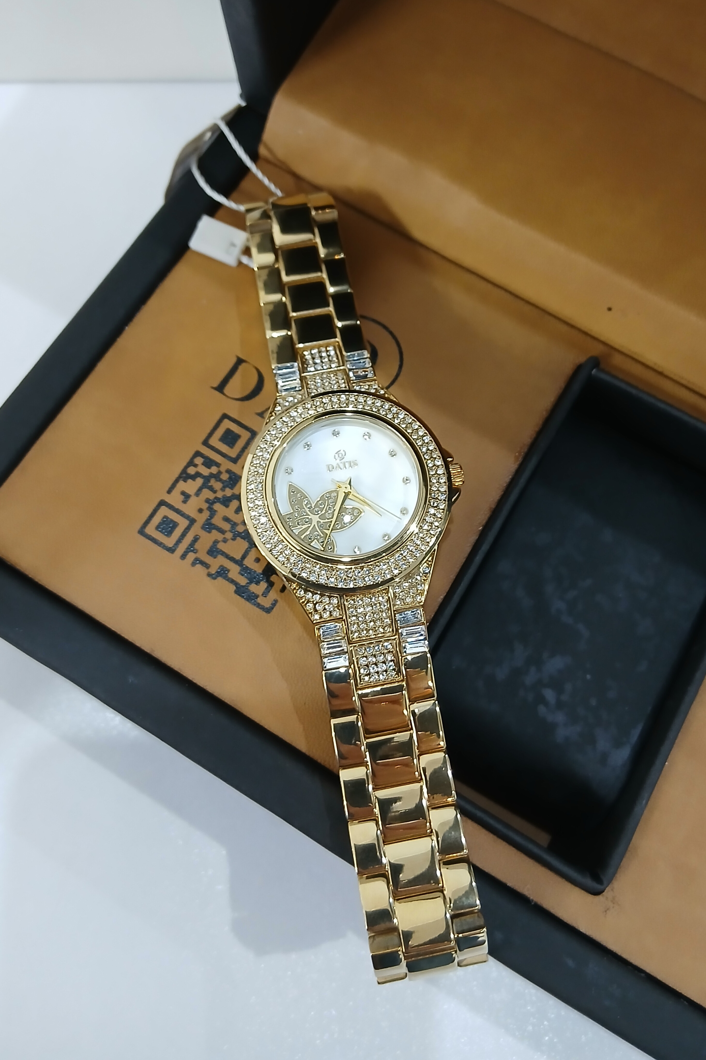 ساعت زنانه طلایی رنگ ثابت داتیس