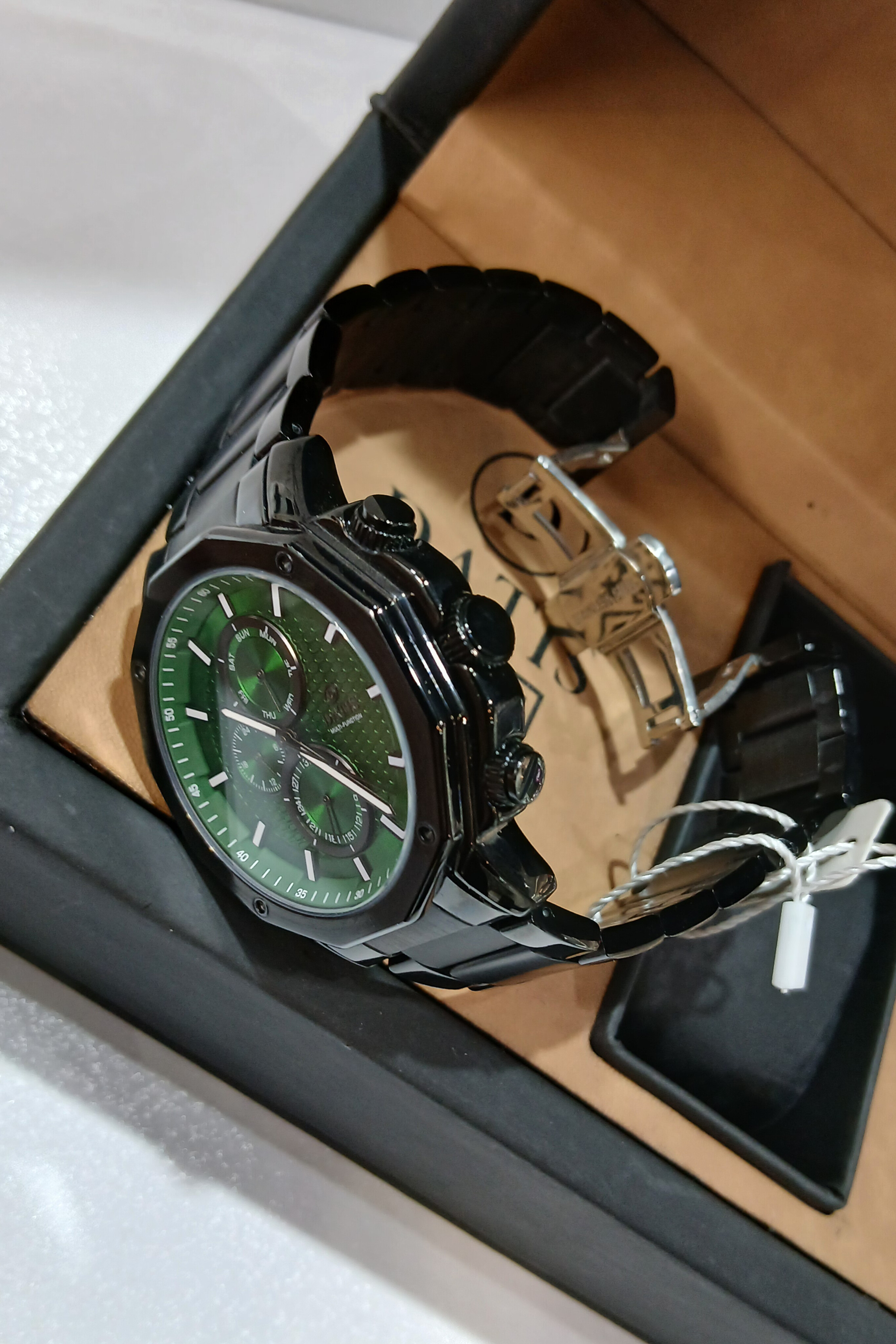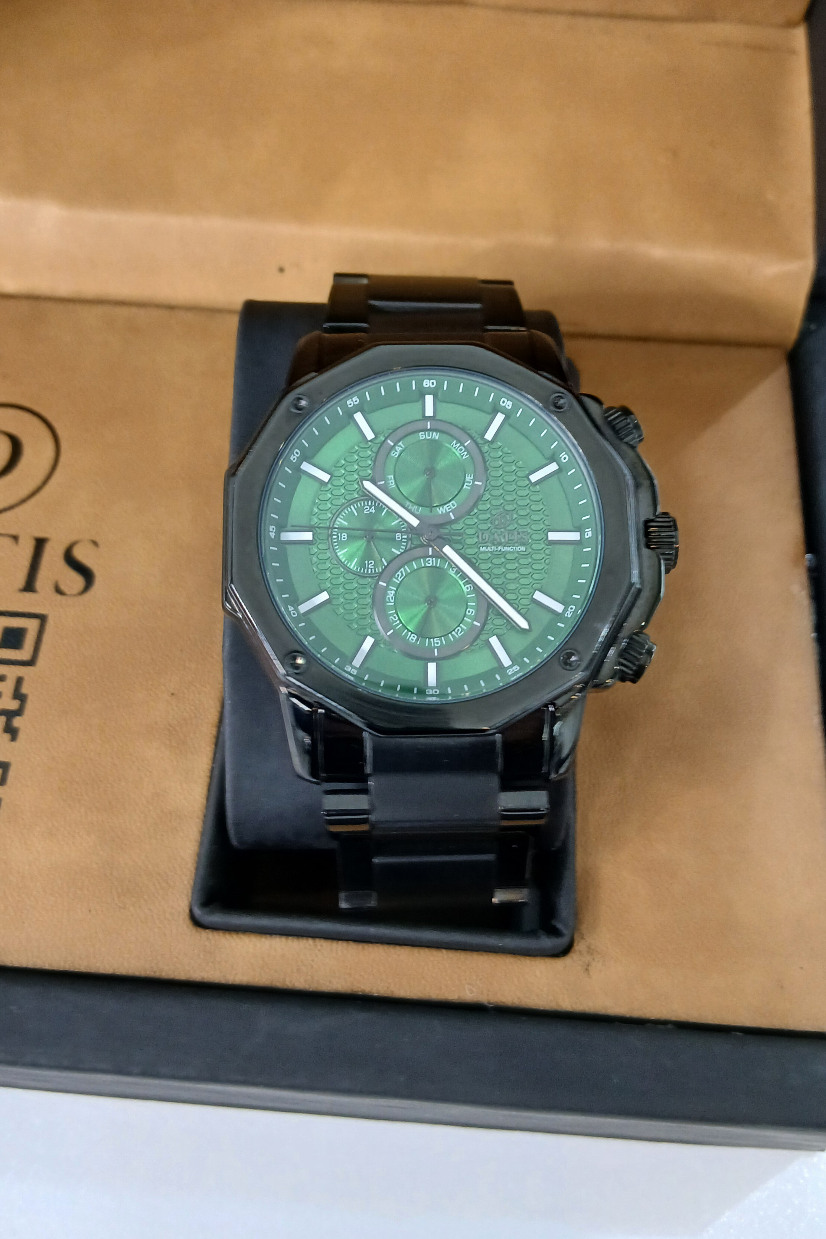این ساعت مردانه مشکی با صفحه سبز بسیار جذاب میباشد، فول دیتس سه موتور فعال است، کیفیت متریال در این ساعت مردانه شیک بسیار بالاست، ضدآب و آنتیآلرژی است با گارانتی ، ارسال فوری و رایگان تقدیم میشود
